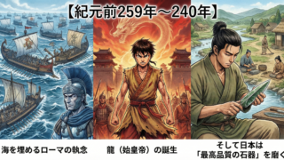 【紀元前259年~240年】海を埋めるローマの執念、龍(始皇帝)の誕生、そして日本は「最高品質の石器」を磨く
