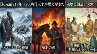 【紀元前219年~200年】ハンニバルの絶望と項羽の涙。天才が燃え尽きた「破壊と創造」の20年、日本の開化天皇が結んだ「平和なネットワーク」