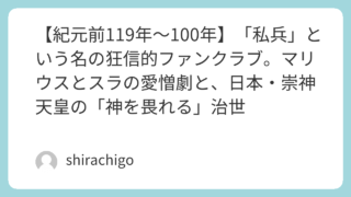 日本と欧州の歴史まとめ 【紀元前119年~100年】「私兵」という名の狂信的ファンクラブ。マリウスとスラの愛憎劇と、日本・崇神天皇の「神を畏れる」治世